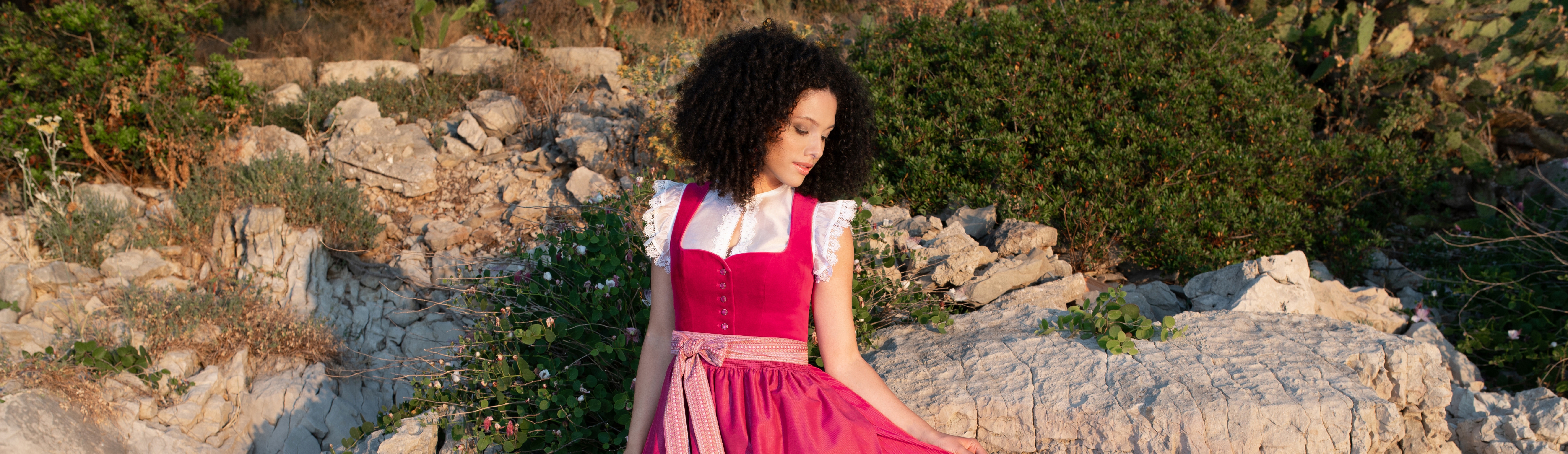 Unsere Dirndl werden aus hochwertigen Materialien produziert, um die bewährte Wenger-Passform und -Verarbeitung zu garantieren.